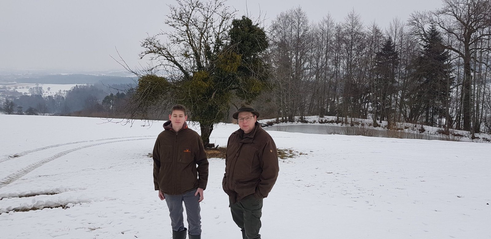 Da Wasser erst weiter weg zur Verfügung stand, kam die Idee zur Anlage eines Teiches als Lebensraum auf: Gesagt, getan: Ein Bagger war zwei Tage im Einsatz und es entstand ein circa 15 x 30 Meter großer Teich als Tränke für Wild und als Lebensraum für Enten, Frösche, Kröten und andere Amphibien. Am Rand gibt es eine Schilfzone und im Sommer zischen schillernde Libellen durch die Luft. Die Enten, die immer wieder hier brüten und rasten, werden nicht bejagt. „Denn wichtig ist uns nicht das Beutemachen, sondern die Freude, dass wir sehen, wie sich eine vielfältige Tier- und Pflanzenwelt entwickelt“, erzählt Schoder mit leuchtenden Augen und einem Lächeln im Gesicht.